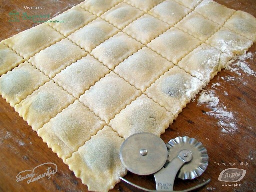Se frământă un aluat neted, elastic și nelipicios din ouă, făină și 1 praf de sare. Aluatul se împarte în două părți identice care se întind, pe planul de lucru presărat cu făină, în doua foi dreptunghiulare, cât mai egale. Pe suprafața uneia dintre foi se trasează, cu un cuțit sau cu rola de patiserie – fără a taia aluatul, linii perpendiculare ce vor forma patrate egale. În fiecare pătrat se așază aproximativ 1/2 linguriță de pegmez.