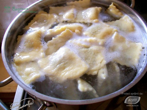 Se pune o oală încăpătoare (4 litri) plină cu apă pe foc. Cand apa dă în clocot, se pun în oală tașchele, toate deodată. In scurt timp, ele se vor ridica.